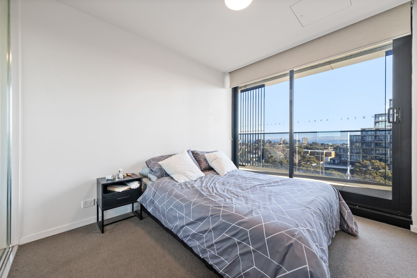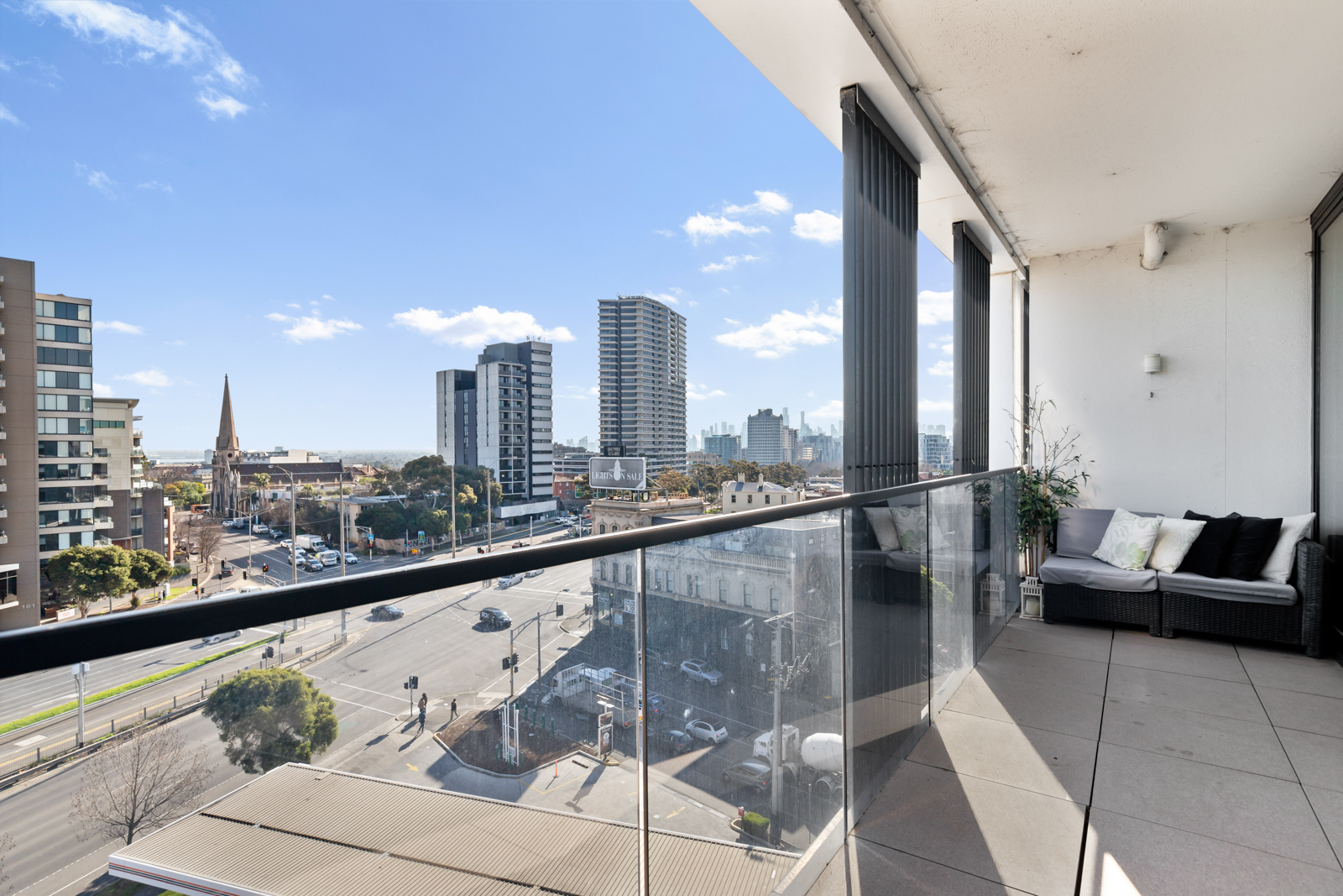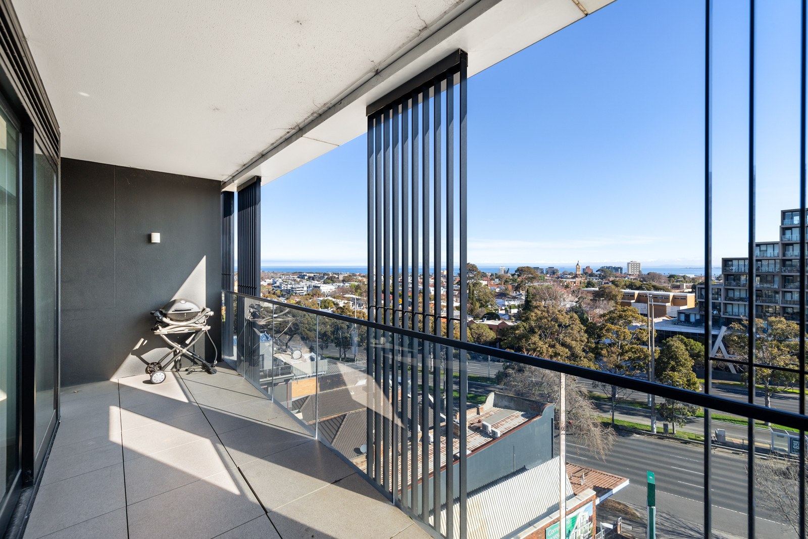 A standout sensation with sweeping city and bay views, this high-end Meridian apartment conveys lifestyle perfection with a sunlit interior, superior appointments and a splendid rooftop entertaining terrace boasting a barbeque area, spa and bathroom facilities. Satisfying the style savvy, the apartment’s open plan hub contains the living, dining and kitchen featuring stone benches, quality appliances and a breakfast bench with sleek floorboards flowing underfoot. Enticing you to soak up the views, a sliding door opens onto the balcony where you can relax with a cocktail and look out to the glistening blue waters of the bay and the shimmering nightlights of the city. Catering for your accommodation needs, the two robed bedrooms include a master bedroom with study nook, built-in-robes and ensuite, additionally serviced by a second bathroom with toilet. Brilliantly topped off with a Euro laundry, reverse cycle heating/air conditioning, video intercom, basement parking space with storage cage plus resident access to the rooftop entertaining terrace, BBQ area and spa. Set in an incredible lifestyle location, moments from Albert Park Lake for daily exercise, Alma Park, beaches, restaurants, Luna Park, Windsor Station and trams to the CBD.