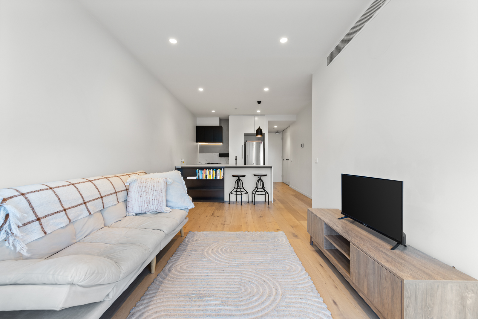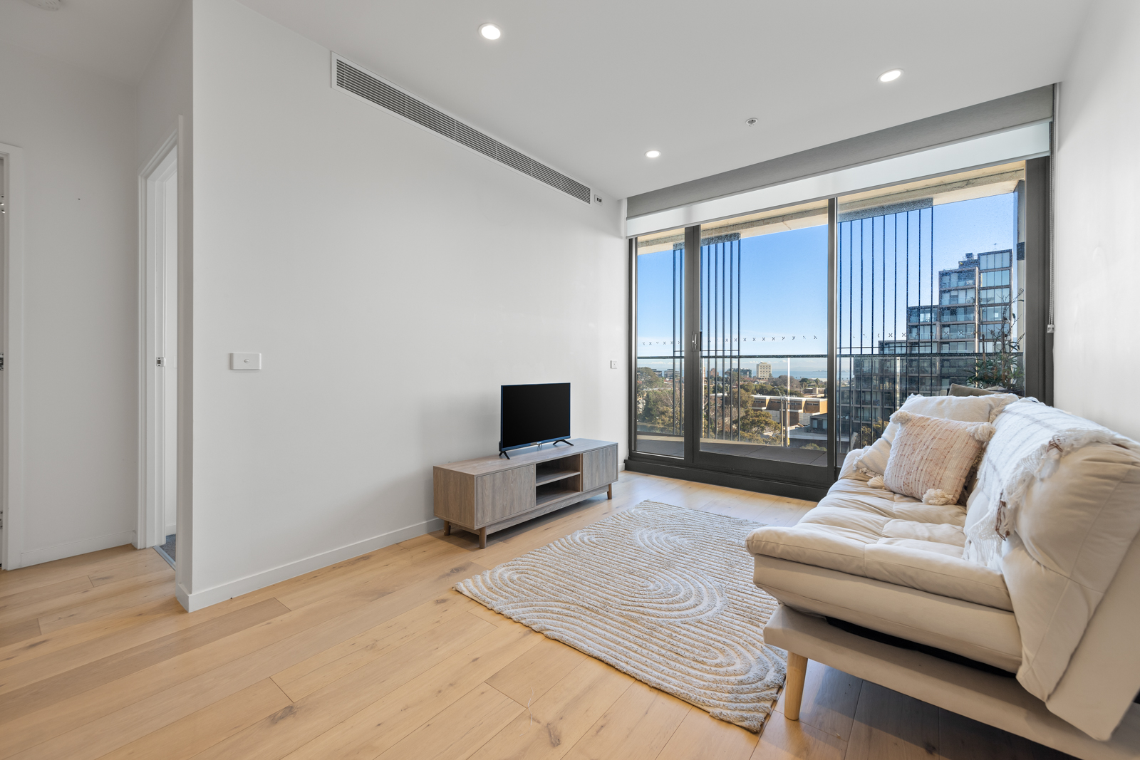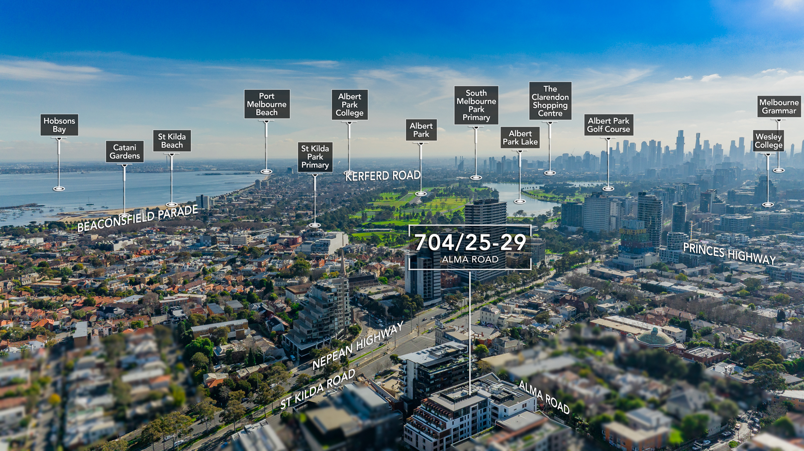 A standout sensation with sweeping city and bay views, this high-end Meridian apartment conveys lifestyle perfection with a sunlit interior, superior appointments and a splendid rooftop entertaining terrace boasting a barbeque area, spa and bathroom facilities. Satisfying the style savvy, the apartment’s open plan hub contains the living, dining and kitchen featuring stone benches, quality appliances and a breakfast bench with sleek floorboards flowing underfoot. Enticing you to soak up the views, a sliding door opens onto the balcony where you can relax with a cocktail and look out to the glistening blue waters of the bay and the shimmering nightlights of the city. Catering for your accommodation needs, the two robed bedrooms include a master bedroom with study nook, built-in-robes and ensuite, additionally serviced by a second bathroom with toilet. Brilliantly topped off with a Euro laundry, reverse cycle heating/air conditioning, video intercom, basement parking space with storage cage plus resident access to the rooftop entertaining terrace, BBQ area and spa. Set in an incredible lifestyle location, moments from Albert Park Lake for daily exercise, Alma Park, beaches, restaurants, Luna Park, Windsor Station and trams to the CBD.